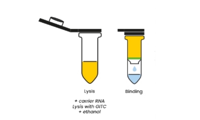 Therefore, in the presence of a caotropic salt, viral nucleic acids selectively bind to the fiberglass membrane in a special centrifuge tube. A process in which nucleic acids remain united while a series of rapid wash and spin steps remove contaminating cellular components.